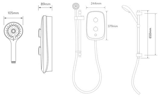 Supplied by mains cold water, the mid-rated 9.5kW model will connect to the existing domestic supply (at 240V) and the unit, shower head and kit are fully guaranteed for 2 years.