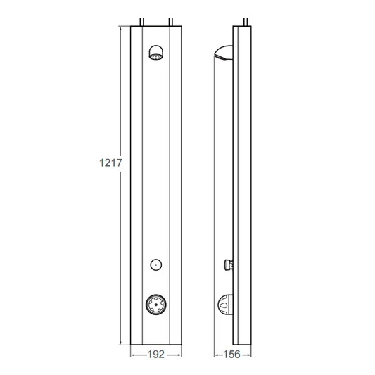Pre-plumbed shower panel with integral adjustable TMV3 approved thermostatic mixing valve, push button timed flow control & vandal resistant shower head