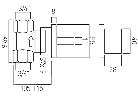 Vado Geo 3/4″” Concealed Stop Valve Wall Mounted (Chrome) – Geo-143-3/4-C/P