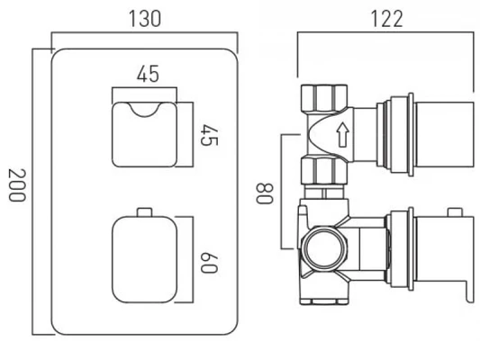 Vado Phase 1 Outlet 2 Handle Concealed Thermostatic Shower Valve Wall Mounted : Chrome – Pha-148C-3/4-C/P